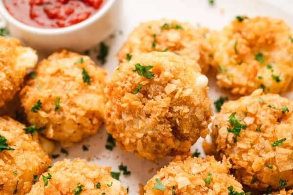 My family asks me to make air fried Babybel cheese at least once a week at this point. And hey, with just 4 ingredients and 3 minutes in the air fryer…how can I say no?! These are such a great snack or appetizer. Make sure to enjoy them hot from the air fryer, when the cheese is super melty and gooey. They’re perfect for dipping in marinara sauce!