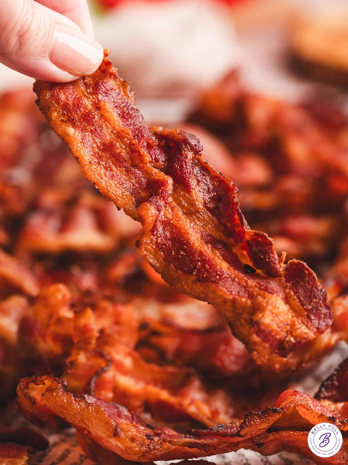 Since this recipe makes just a few slices of bacon, it’s also a great option when you need crumbled bacon as a topping for salads, like a wedge salad, dips, and even pizza.