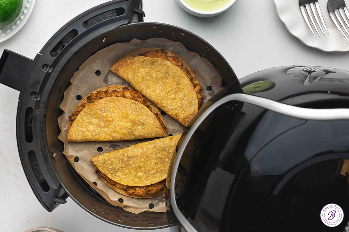 - Flip halfway through. Flipping the tacos at the halfway mark during air frying helps both sides get golden and crispy.