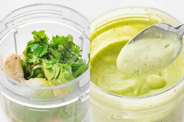- Meanwhile prepare the avocado-lime dipping sauce while the tacos are cooking. Add 1 small ripe avocado, 1/4 cup mayonnaise, 2 cloves chopped garlic, 2 tablespoons fresh chopped cilantro, 1 tablespoon lime juice, 1/4 teaspoon salt, 1/8 teaspoon pepper, and 1/4 cup water to a blender. Blend until smooth and creamy, adding more water if needed for desired consistency. Taste and adjust seasoning with more cilantro, lime juice, or salt if needed.