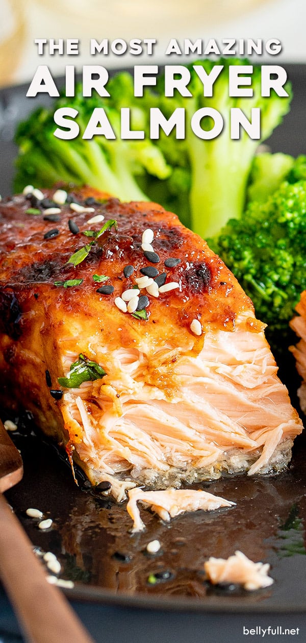 - Sprinkle with the sesame seeds and chopped scallions or parsley. Serve right away and enjoy!NOTE: The weight and thickness of your salmon filets and type of air fryer you use can affect the cook time. Adjust accordingly.