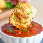 - Garnish with fresh parsley and more grated parmesan, if desired. Serve with my homemade marinara sauce (or your favorite store-bought brand) for dipping.NOTE: Directions for baking these in the oven are included in the article below.