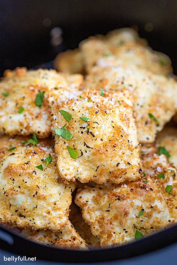 This caught my eye because I just bought an air fryer but it’s very small so I made the oven version and they are delicious! I’m not a fan of traditional ravioli but the crunch on these is wonderful. Will definitely make again. Thanks!