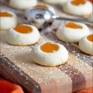 My thumbprint cookies are light, flaky, and delicious. And adaptable! Choose any jam you like. I went with apricot because I was experimenting with Halloween goodies and wanted something orange. Make a batch! And hey, it’s never too early to do some holiday gift shopping for the baker in your life!