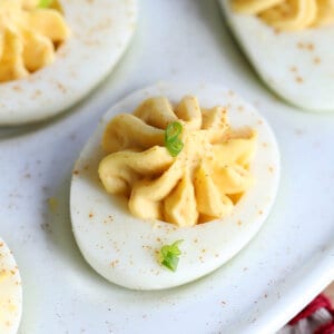These BBQ Deviled Eggs are everyone’s favorite party appetizer with a tender and creamy middle and fantastic sweet-smokey flavor. Better make a double batch because they’ll go fast at your next get together!