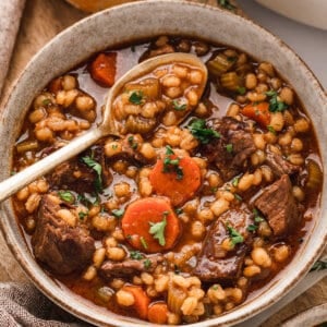 With tender stew meat and pearl barley in a rich, savory fully flavored broth, this Beef and Barley Soup recipe is hearty, filling, and easy to make. It’s just the thing for cold winter nights!