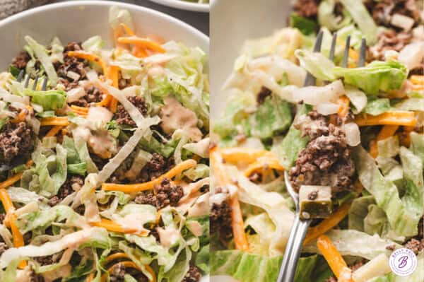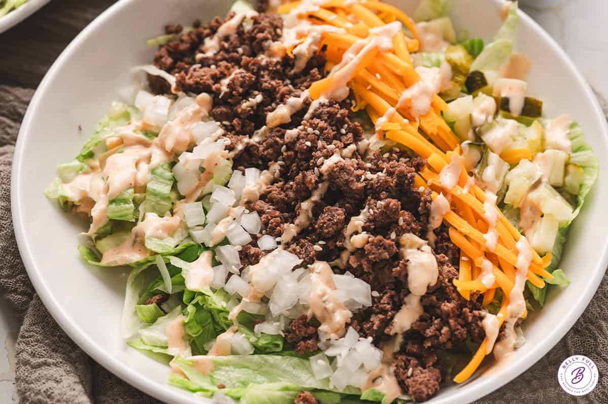 This is the best salad! Tastes just like a Big Mac, satisfying any fast food craving, plus it’s great for meal prepping.