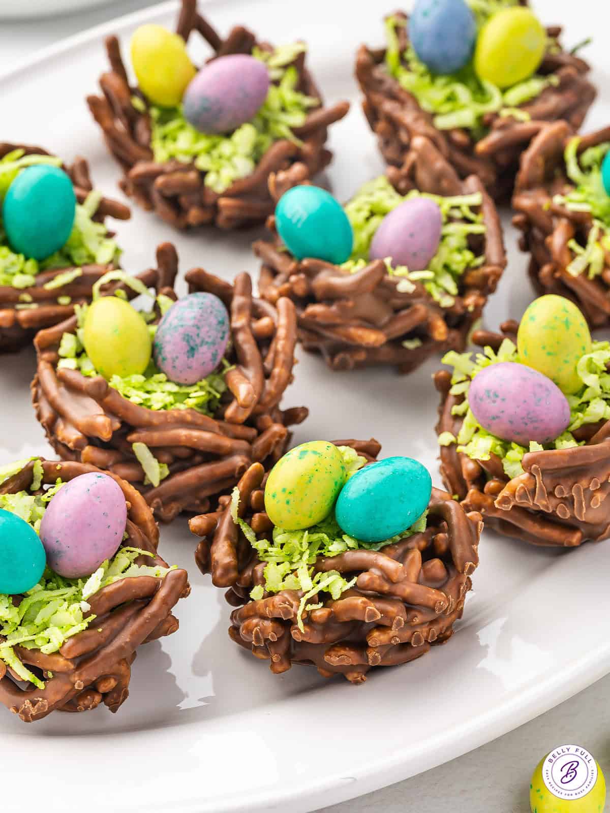 These bird’s nest cookies are a classic treat to make every spring for Easter. They’re fun and festive, with little M&M pastel eggs in the center, and they require absolutely no baking. Not to mention, they’re easy enough for the kids to help make them! I find that the M&M eggs are easiest to find right before or after Easter but I’ve also made these cookies at other points in the spring too.