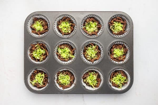- Evenly distribute the noodle mixture among the muffin cups, making an indentation in the center. Top with some dyed coconut.