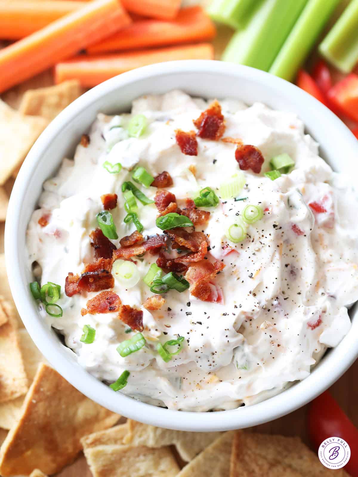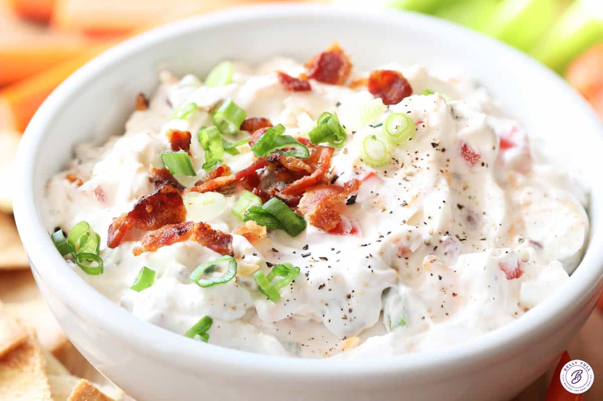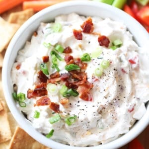 This cold BLT dip recipe is low carb, keto friendly, and gluten free. To keep it that way, I always serve it with fresh vegetable sticks, such as carrots, celery, and bell pepper. If there are no dietary restrictions, pita chips go great with this dip, as well. It’s also delicious used as a spread for grilled hamburgers in the summertime!