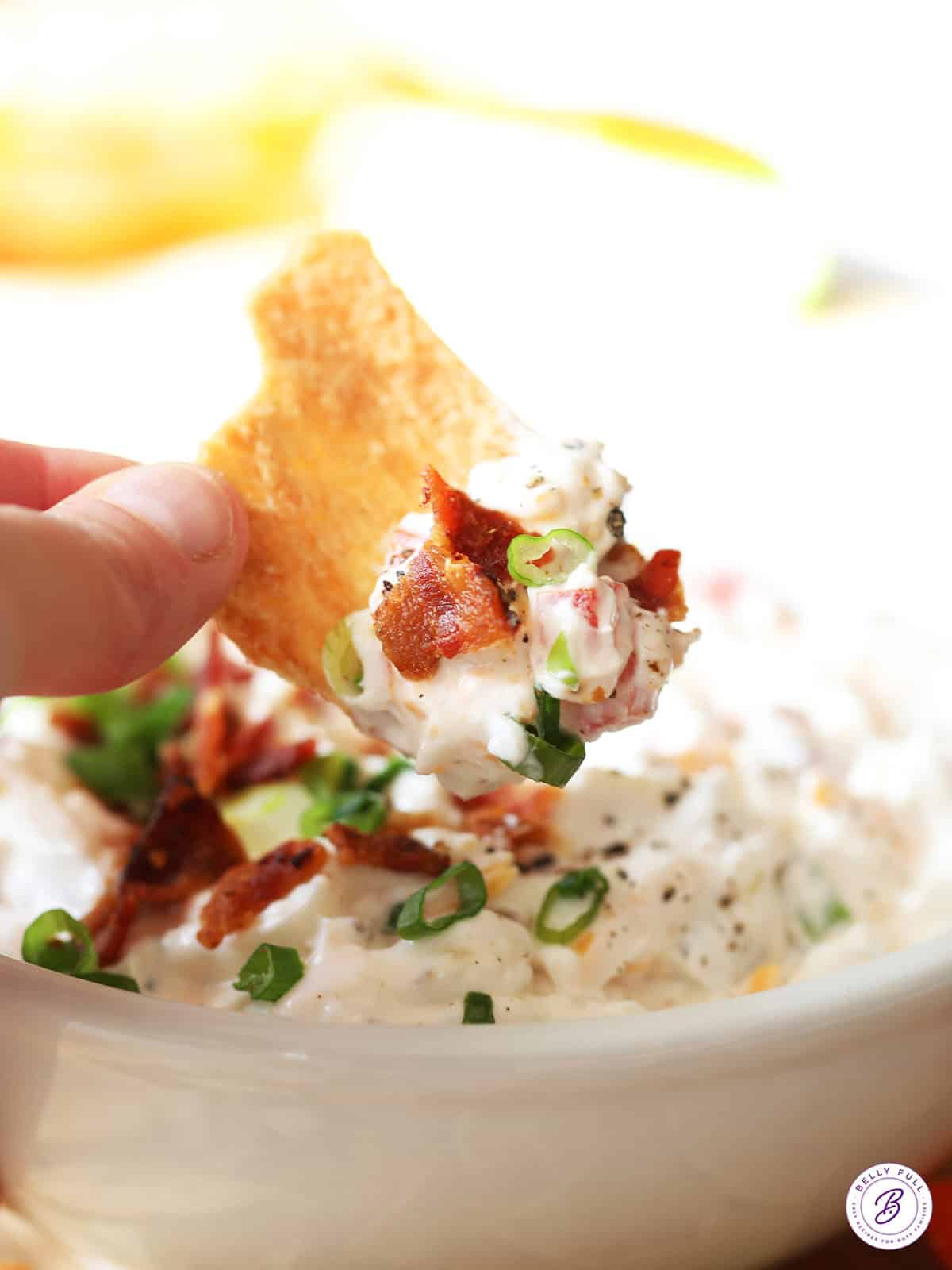 - Sprinkle reserved bacon and scallions on top and enjoy with your choice of dippers!