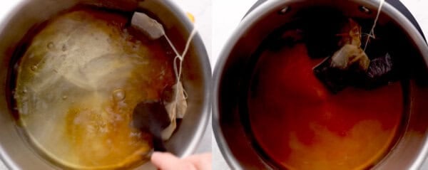 - In a large pot, bring the water to a boil. Add the tea bags; stir once or twice to make sure the tea leaves are saturated with water. Take off the heat and let the tea sit in the hot water until it cools to room temperature. Discard the tea bags, then place the bowl of tea in the fridge to chill completely.