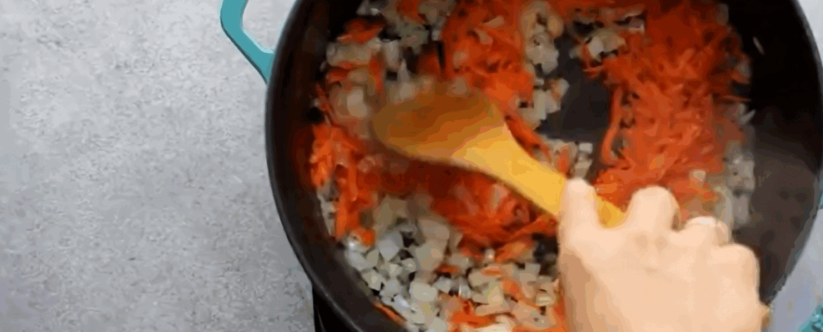 Cook onion and carrots: In a heavy-bottomed pan or Dutch oven, warm 2 tbsp oil over medium heat. Add 1 onion and 1 carrot; cook, stirring frequently, until softened, about 5 minutes. Season with salt and pepper. Add 2 tbsp tomato paste and cook, stirring constantly, for 30 seconds or so.