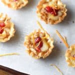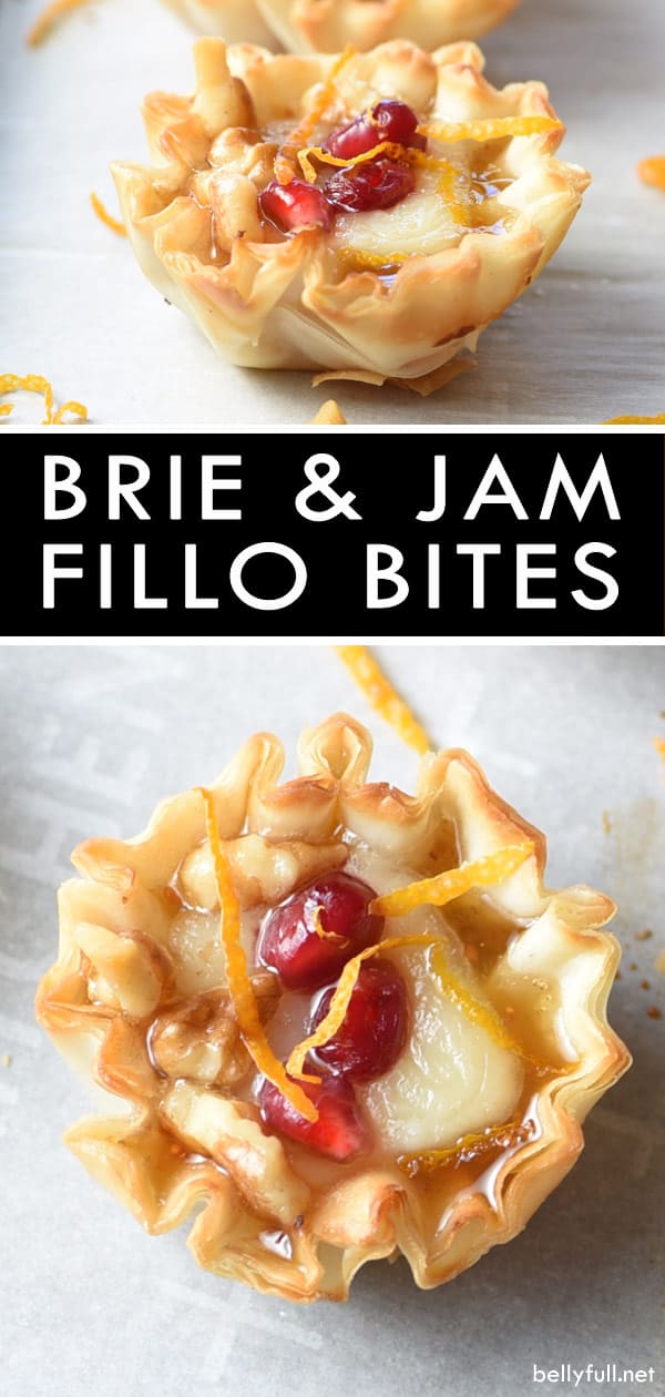 These Brie Phyllo Bites join my turkey brie grilled cheese and brie naan pizza where buttery, melted brie cheese shines and makes me weak in the knees.