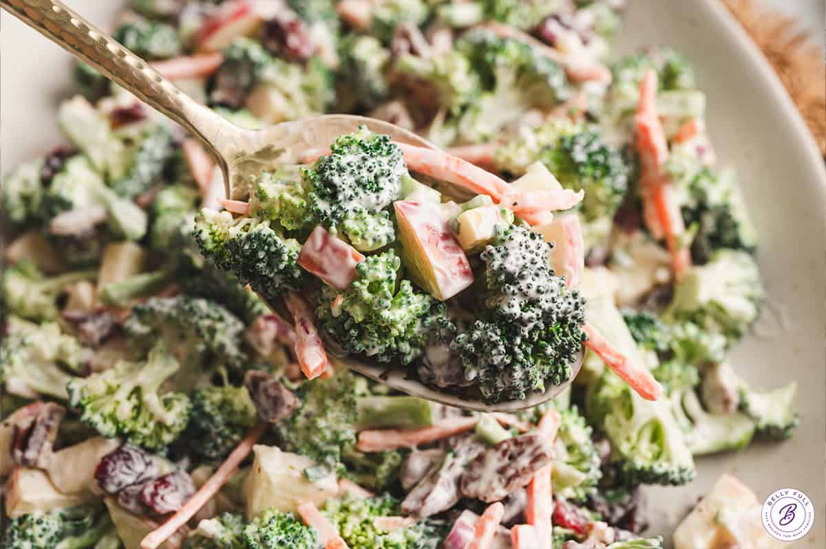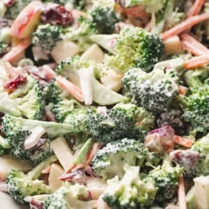 If you love my classic broccoli salad, you will definitely love this broccoli apple salad recipe, too! It might win as my favorite side dish of the summer. Crisp, fresh veggies are tossed in a creamy but light dressing including mayo, sour cream, and vinegar. The ingredients are chopped and diced into small pieces, so every bite offers a variety of flavors and textures. Plus, there is 0 cooking required to prepare it!