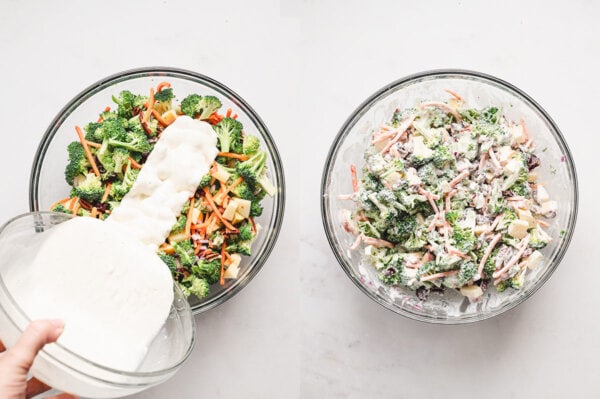 - Make ahead. I recommend making this broccoli apple salad at least 2-3 hours in advance. Refrigerating it for at least a few hours really helps the flavors blend together.