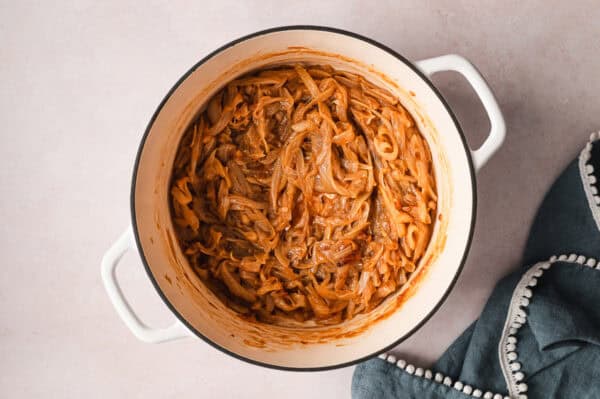 I love onions so much, I really can’t understand how anyone doesn’t! As seen in my onion boil recipe, I could just eat them seasoned and baked whole. And French onion soup makes a regular appearance on my dinner table. So so good. I think a lot of people who dislike them really just dislike raw onions and are missing out on dishes like caramelized onions. Cooking them low and slow helps release the natural sweetness and turns basic onions into a sweet but savory condiment. If you’re an onion lover like me, be prepared to eat these by the forkful!