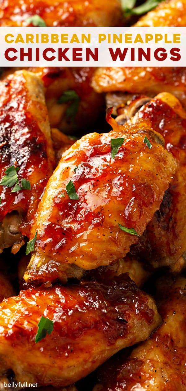 These Caribbean Baked Chicken Wings are basted in a homemade flavor packed jerk–pineapple sauce, then roasted to perfection in the oven. This recipe is so easy and mouth watering, perfect as an appetizer, side dish, or full meal served with a salad.