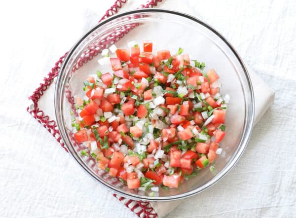 - For the pico de gallo: In a medium bowl, combine all the ingredients for the Pico de Gallo. Let mixture sit for 15 minutes, then taste and adjust with more salt and/or lime juice, if needed.