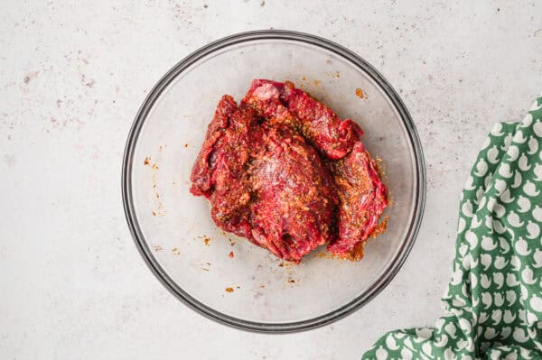 - For the steak: Combine oregano, cumin, garlic powder, onion powder, crushed red pepper, salt and pepper. Rub spice mixture over both sides of steak, along with the vegetable oil and adobo sauce (if using.) Refrigerate while preparing your other ingredients. (If you can, marinate overnight for best flavor.)
