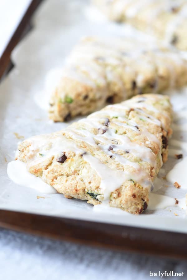 - Generously drizzle scones with the glaze. (Glaze will firm up when scones are completely cool.) Eat and enjoy!