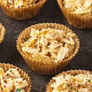 - Drop in muffin liners. Drop portions of the mixture into muffin paper liners. Top with sprinkles, if desired.