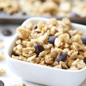 With oats, nut butter, chocolate chips, and banana chips, this Homemade Chunky Monkey Granola is easy, delicious, and makes a fantastic snack on the go!