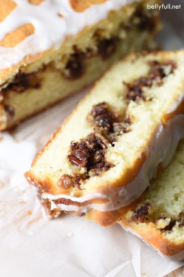 Hi! This delicious! My favorite things in one loaf! Bread that has cinnamon… butter… pecans and glaze!!!