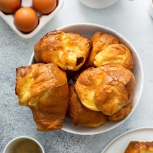 This classic Popover Recipe gives you the best popovers that are light, buttery, and fabulous. Similar to Yorkshire Pudding, they rise up high with a crispy exterior and hollow interior. An easy roll to serve for breakfast, dinner, or as a side, there’s nothing else like them!