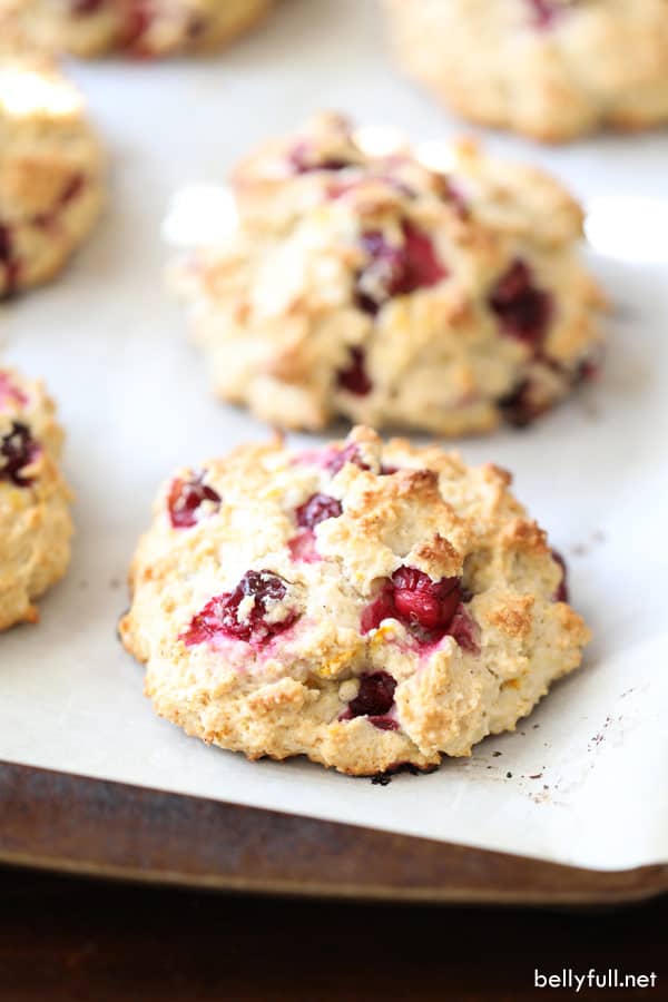 Right now I have a lot of fresh cranberries, which I’ve been using in muffins and for my favorite homemade cranberry sauce, but my daughter asked if I could make biscuits and these Orange Cranberry Drop Biscuits were born. They’re so easy to make without any yeast and no kneading required. Perfect Thanksgiving or Christmas side, but also great all year round served for breakfast!