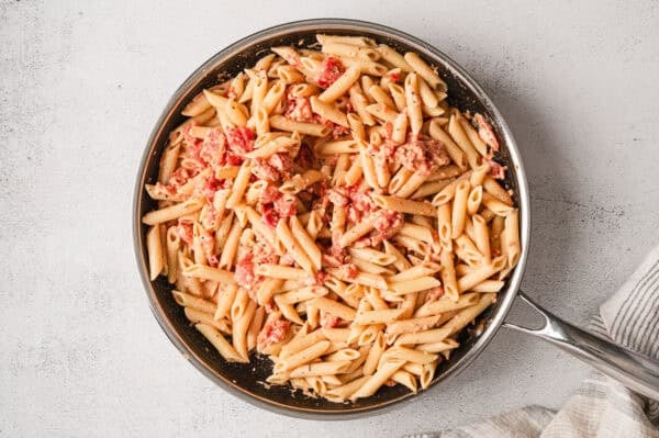 - Don’t overcook the pasta. Al dente pasta is the way to go for this creamy penne recipe. It’ll vary based on the exact pasta, so pay attention to the package directions.