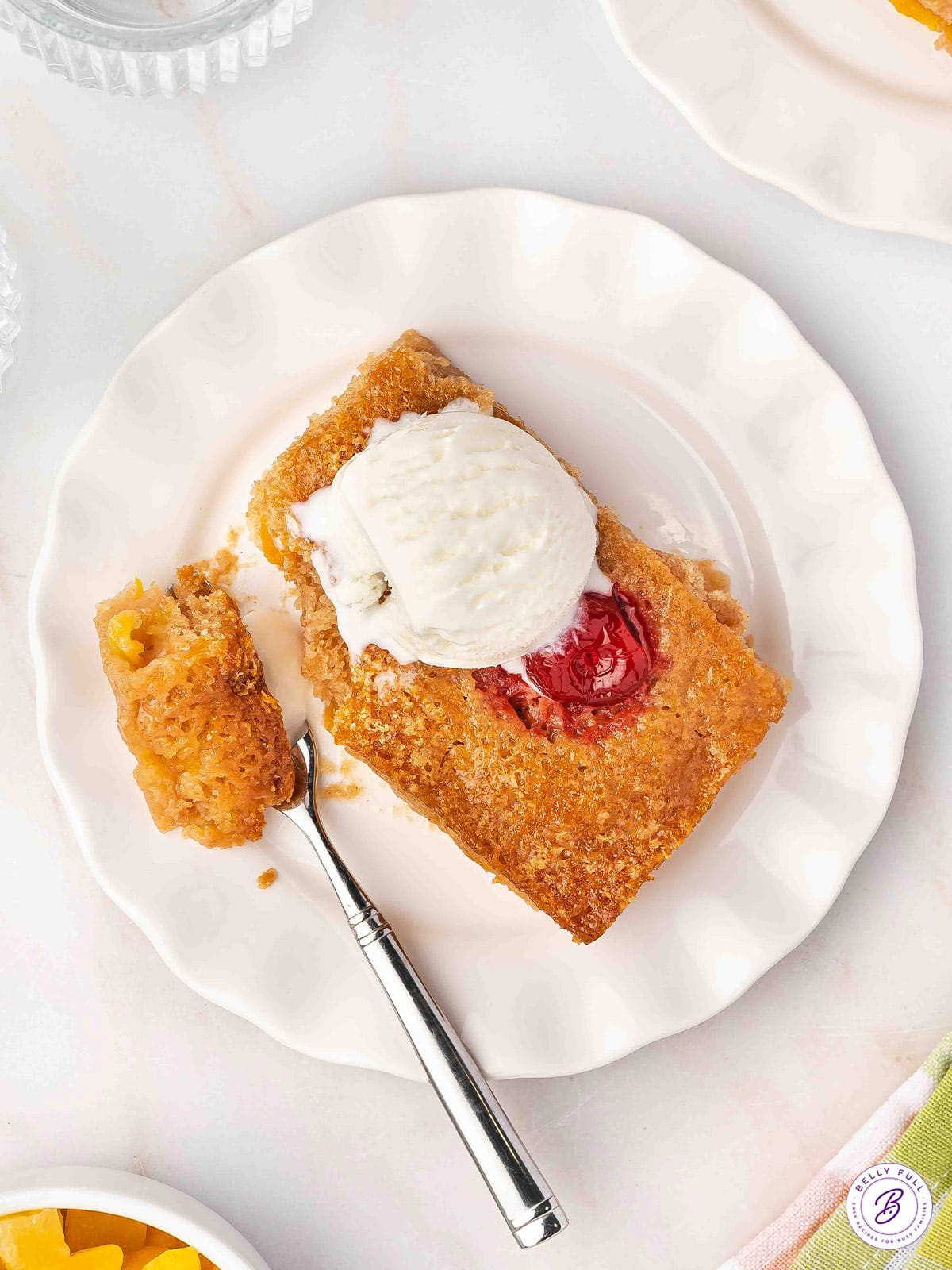 Just like Dolly’s original recipe, this cuppa cuppa cake is so ridiculously simple with just 5 minutes of prep, and so delicious served with some vanilla ice cream. And there’s little chance of forgetting the measurements! The texture of the cake is very moist and sticky, a bit like a cobbler, and it’s perfectly sweet. I did add a pinch of cinnamon. It’s not in the original recipe, but it adds a nice warmth that I love.