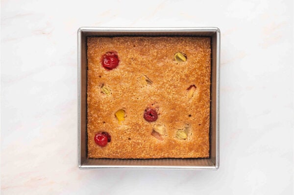 - Grease the pan generously. Use butter, not non-stick spray, for the best results. It also helps to add some richness to the cake. But, most importantly, it makes it possible to actually remove the cake slices from the pan.