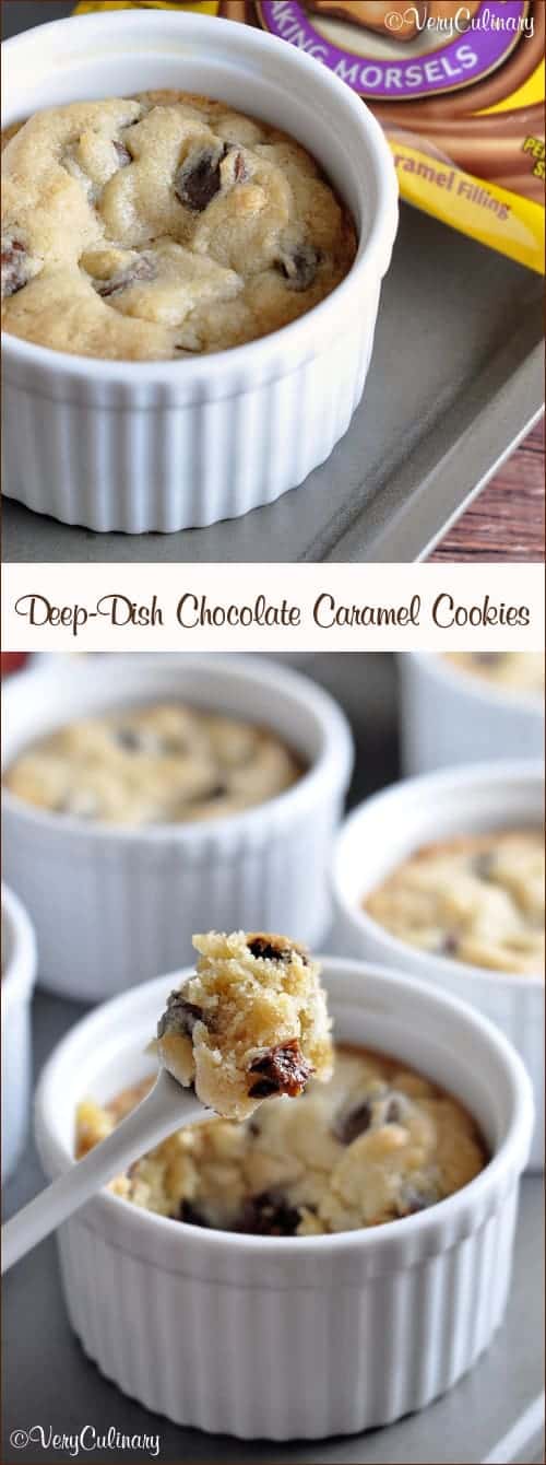 This cookie recipe is just as easy to make as regular chocolate chip cookies. Just make the dough, transfer it to the ramekins, and bake.