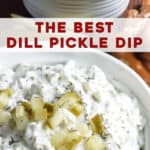 Including dill pickles, onions, and seasonings, this Dill Pickle Dip is the absolute best cold dip where dill pickles are the star! Great appetizer for game day, parties, or as a spread for burgers! Whip up a batch in 10 minutes.