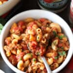 Made with ground beef, macaroni pasta, a rich tomato-based sauce, and cheese, it’s a foolproof, delicious weeknight dinner with easy clean-up. My family loves this dish and yours will, too!