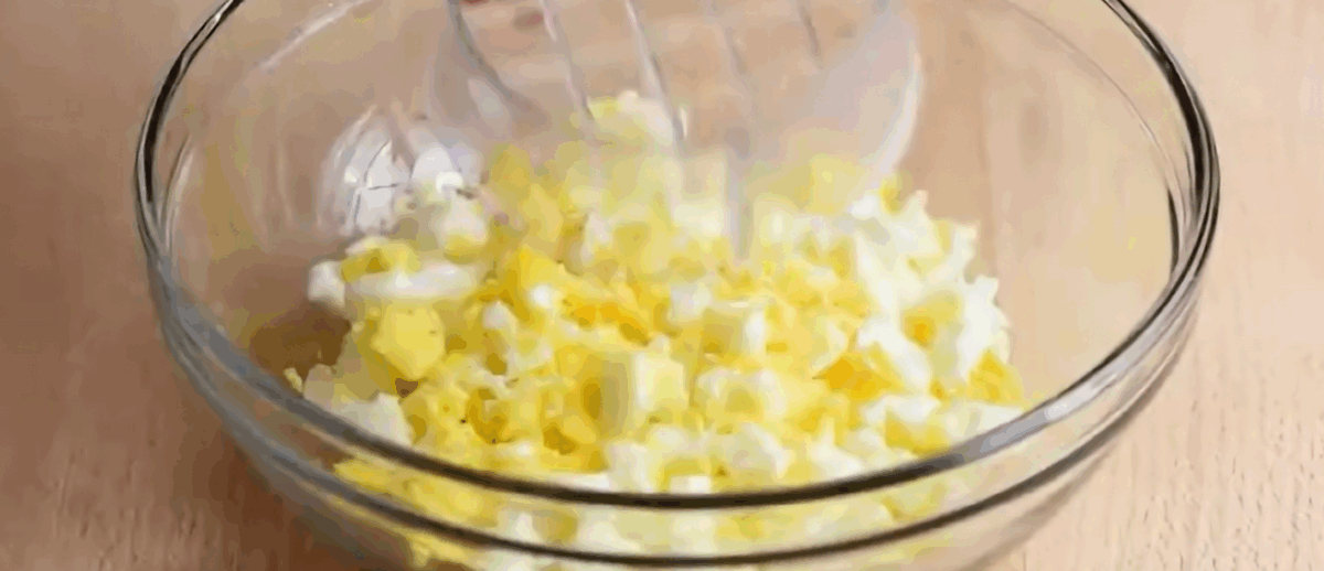 Chop the eggs: Peel and chop the eggs into small pieces either with a knife or an egg chopper.