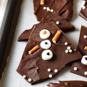 Christmas Tree Lights,ย Snowman,ย Santa Belt,ย and Hanukkah themed no bake chocolate bark for the holidays! Cute, fun, easy, and no oven required!