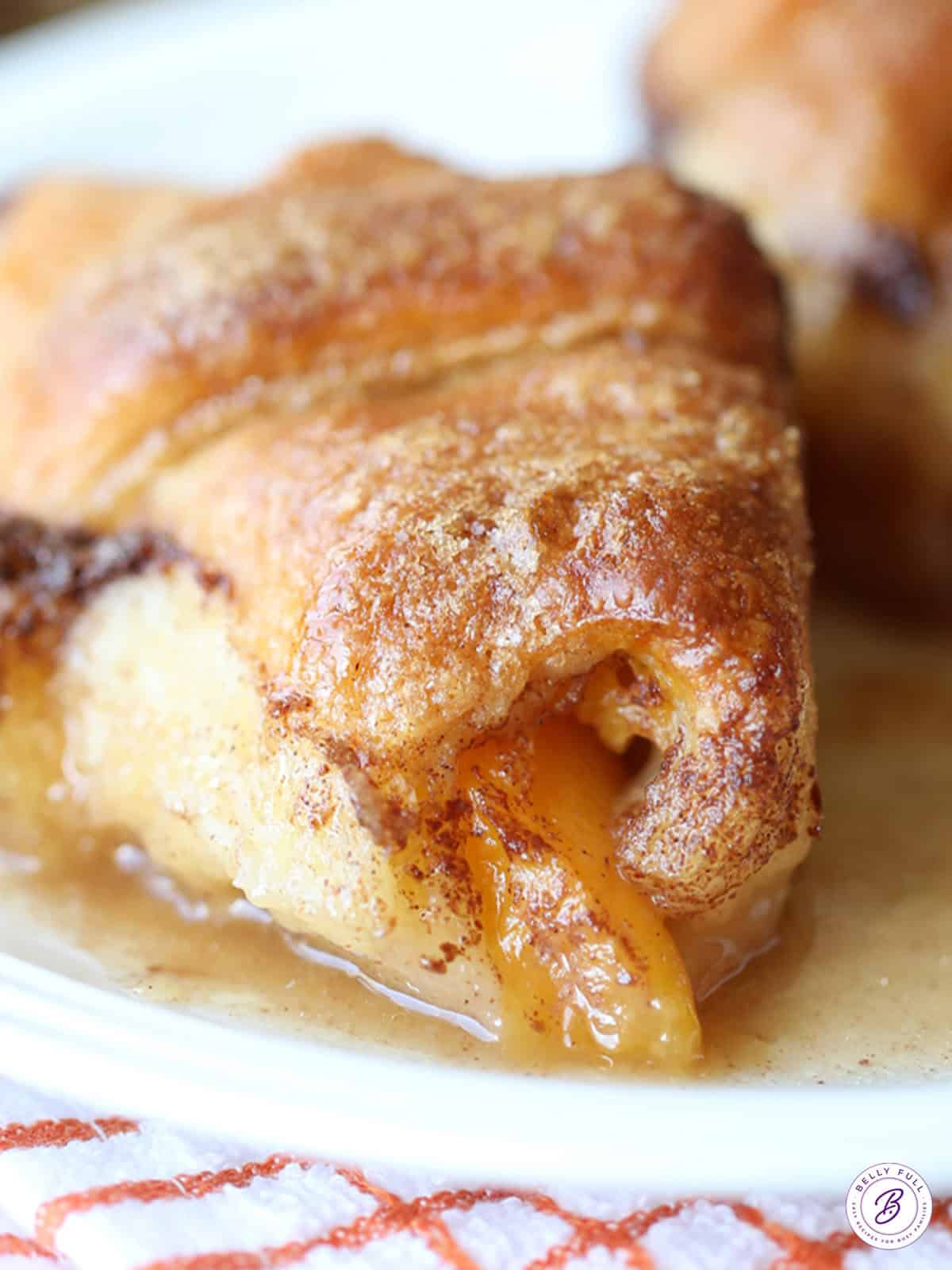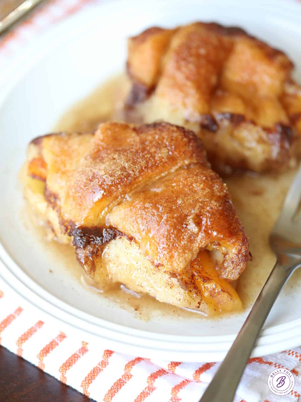 These peach dumplings are best served fresh and warm, but you do want to let them sit for 5 to 10 minutes out of the oven before serving. Otherwise, they’re super hot! They’re incredible with a scoop of vanilla ice cream. You could also serve with whipped cream or a drizzle of caramel sauce for an extra decadent treat.