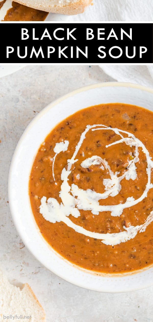 I find this pumpkin black bean soup is delicious on its own, but I love adding classic Mexican toppings like crunchy tortilla chips or a dollop of pico de gallo or guacamole, or a sprinkle of shredded Mexican cheese. I also find that a swirl of sour cream or plain Greek yogurt, along with chopped scallions or chives, adds the finishing touch.