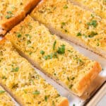 Both my kids love this homemade garlic bread, so much so that they request it every day, and if an entire week goes by without me making it, there’s some serious complaining.