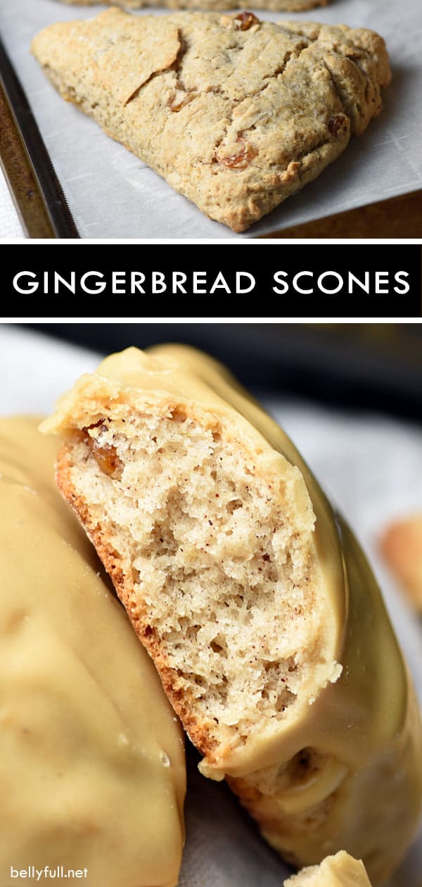 These gingerbread scones are my latest, embracing the fall season. With a moist, tender crumb and loaded with sweet golden raisins, warm gingerbread spice, and a rich molasses glaze, they are so amazing!