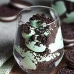 If you love Grasshopper Pie, you will love these Grasshopper parfaits too. Granted, I made a few alterations. Traditional Grasshopper pie is made with marshmallows, creme de menthe liqueur, and creme de cocoa. I went with cream cheese and mint Oreos to keep it kid-friendly.