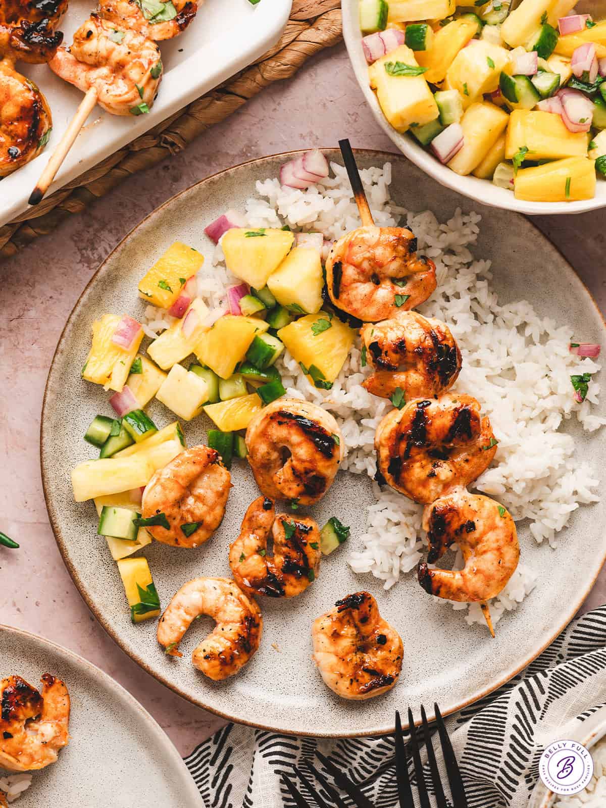 - Serve shrimp with coconut rice or pineapple cucumber salad. Delish!