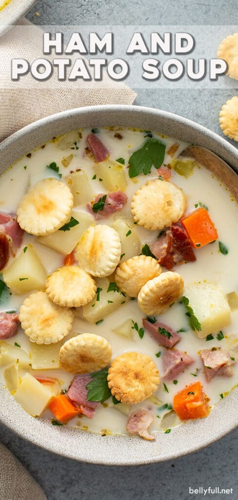This easy Ham and Potato Soup recipe can be made with ham hocks or a leftover ham bone. It’s so simple, but big on flavor! Rich, hearty, and so comforting on a chilly night.