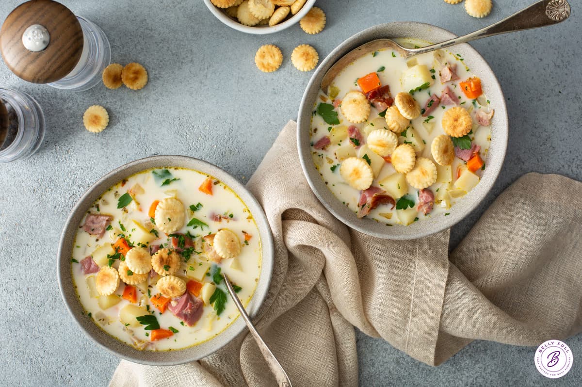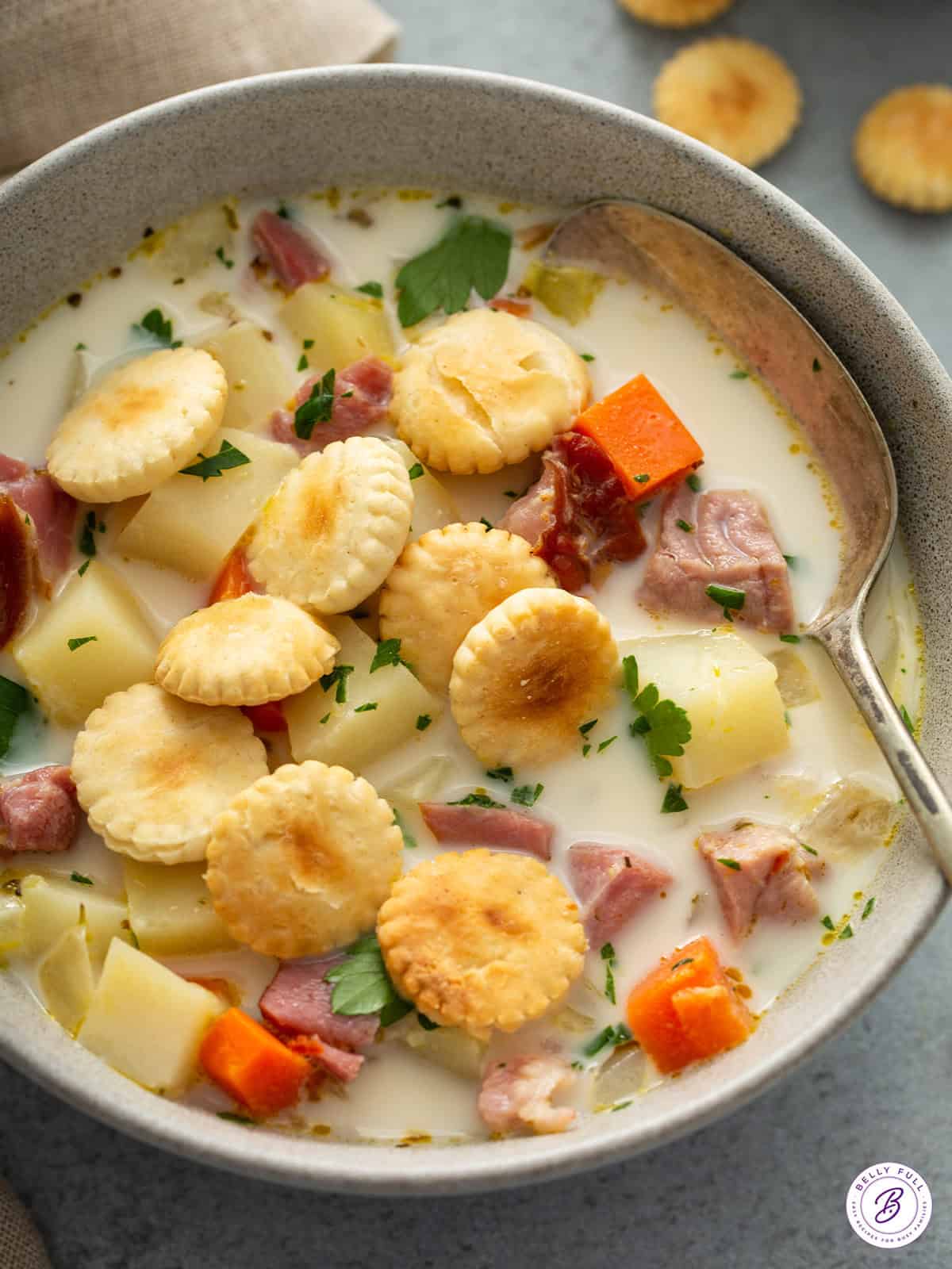 - Ladle soup into bowls and serve with a little garnish of freshly chopped parsley and some oyster crackers.