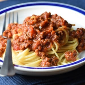 Maybe not considered a quick spaghetti sauce, since you really want it to simmer for several hours which deepens the flavors, but definitely an easy spaghetti sauce. It’s perfect for piling on top of spaghetti, used as the sauce layer in lasagna, or just mopped up with some garlic bread. It also freezes beautifully, so you can always have some on hand.