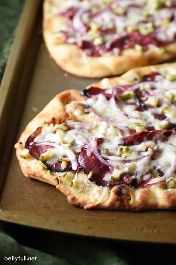 This hot pastrami flatbread comes together in just 3 simple steps!