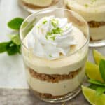 These Key Lime Cheesecake Parfaits have all the components of key lime pie, but layered in individual serving glasses. Creamy, sweet, tart, tangy, delicious! An easy no-bake treat for a summer brunch or after dinner dessert.