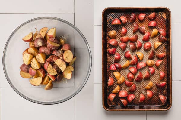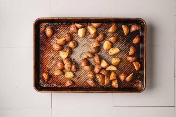 - Roast the potatoes:Preheat oven to 425F with rack in the middle position. Lightly coat a large rimmed baking sheet with nonstick cooking spray.